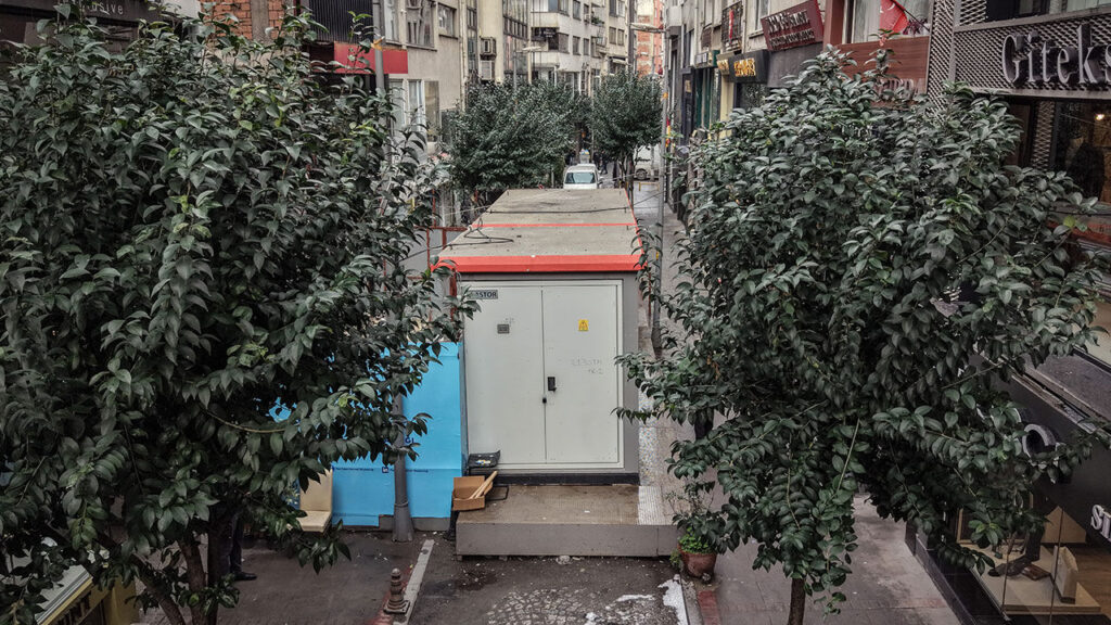 İstanbul Büyükşehir Belediyesi (İBB) tarafından Şişli Meşrutiyet Mahallesi’nde bir sokakta yürütülen belediye hizmet binası inşaatı kapsamında yolun ortasına yerleştirilen elektrik